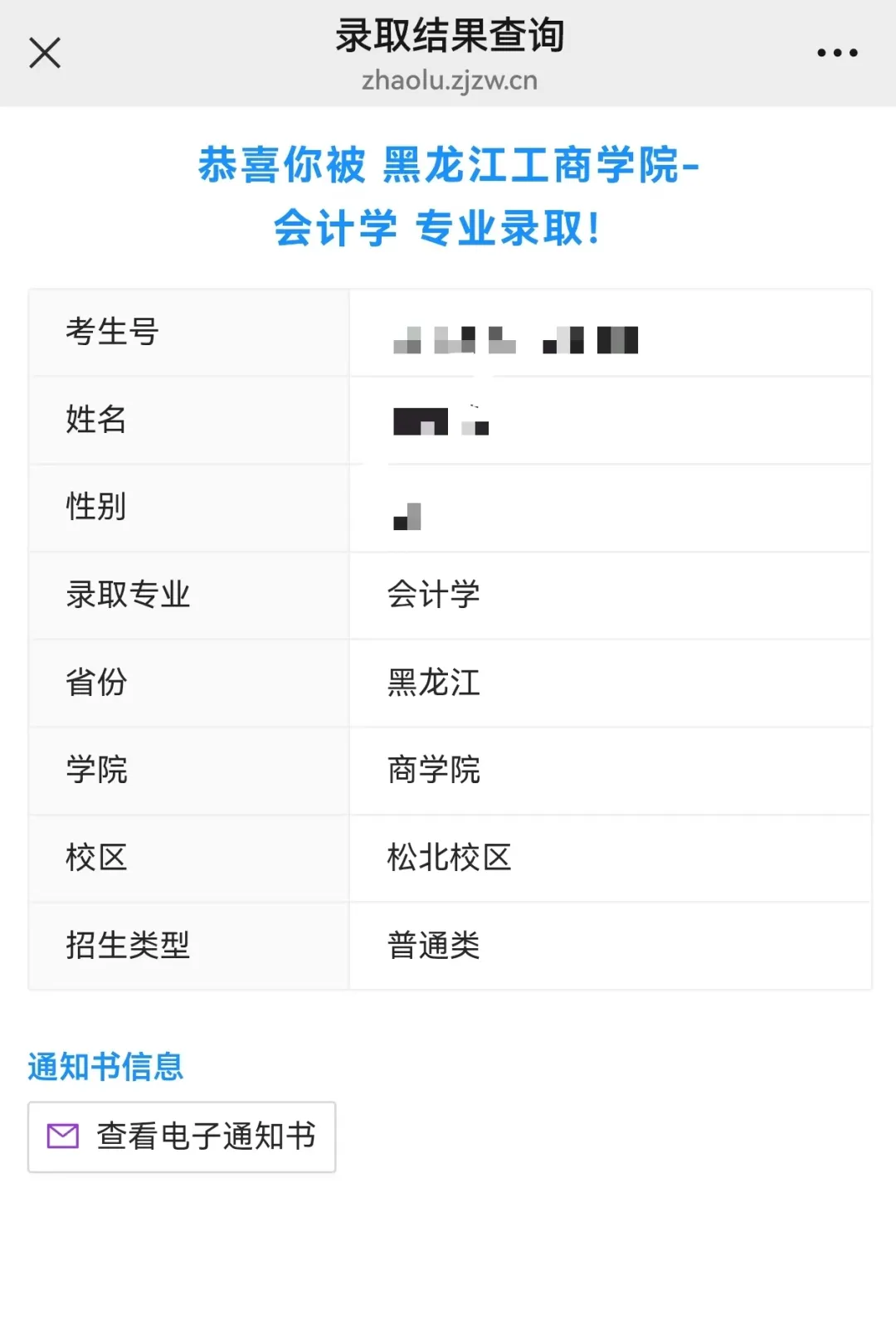 选择“数据查询”一栏下的“录取结果查询”,页面如下: