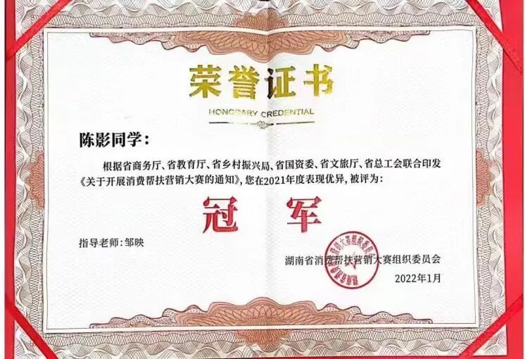 2021级电子商务(本)2102班学生,现为湖南省怀化市会同县乡镇人民政府科员。