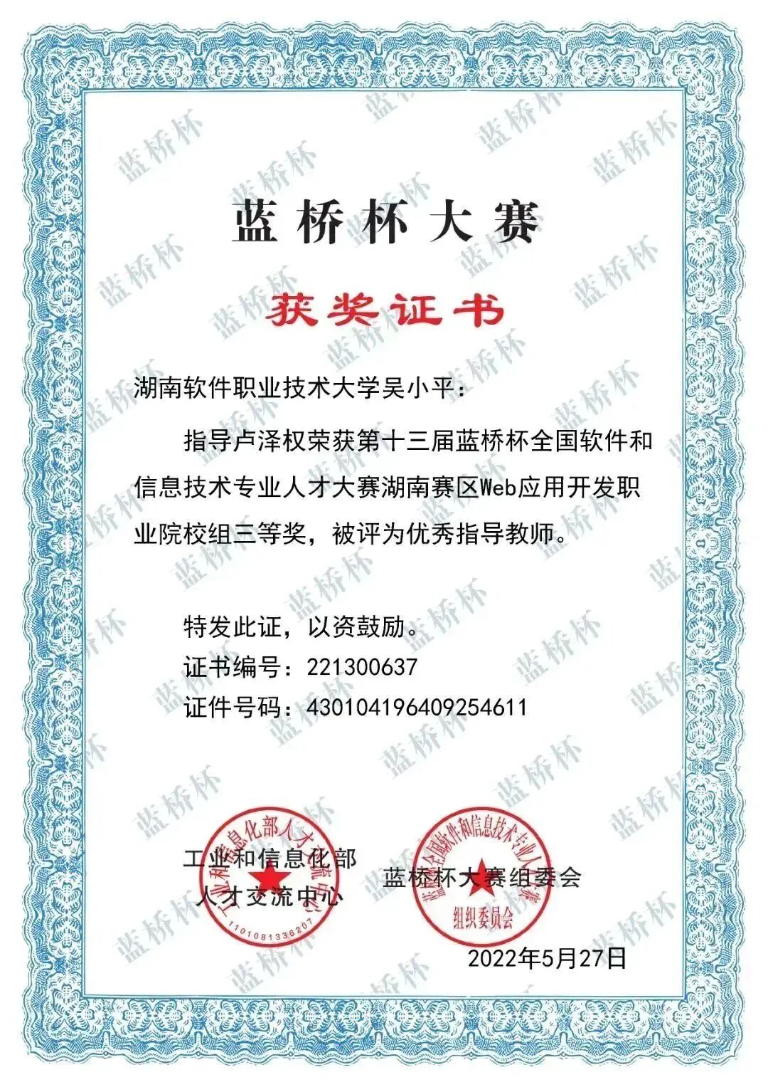 电子信息工程师,高级WEB开发工程师,湖南大学软件工程硕士,具有10年一线软件开发岗位工作经验,7年软件技术教育经验,主要研究方向为软件技术前端开发,对前端开发领域有较深理解。近年来,发表论文20余篇,编写教材3本,参编专著4本,获取国家实用新型专利7项,外观专利3项,软件著作权12项,参与省级课题4项,主持市厅级课题3项。多次获评学校“优秀教师”。
