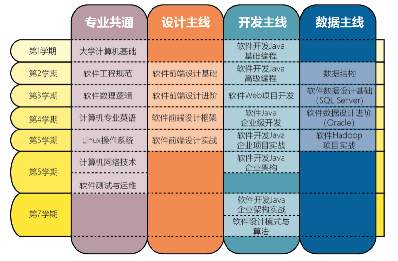 培养Java全栈高素质技能人才——系统掌握Java核心编程、Web开发(Spring/Spring Boot/MyBatis等框架)、数据库设计(MySQL/Oracle)、微服务架构(Dubbo/Spring Cloud)等技术,熟练使用IDEA等开发工具,具备需求分析、系统设计、代码实现及项目调试能力,能在互联网、金融、企业信息化等领域,从事Java Web应用开发、后端服务开发、分布式系统搭建与维护等工作,兼具工程实践能力与团队协作意识,适应Java技术生态下的软件开发岗位需求。