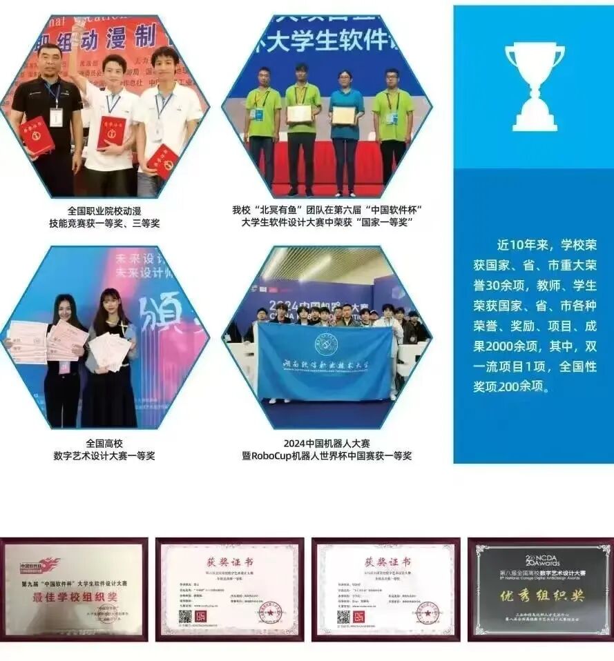 办学以来,学校坚持社会主义办学方向,全面贯彻党的教育方针,坚持立德树人,扎根湖湘大地办职业教育,十余年艰苦奋斗、砥砺前行,取得了显著办学成绩。拥有2个省级教改专业、1个省级特色专业、1个湖南省高等职业教育一流特色专业群、1个湖南省楚怡高水平职业本科专业群,1门国家级在线精品课程。拥有国家、省、市各类平台9个。学校先后荣获教育部人才培养工作评估合格高校、湖南省职业教育教学管理工作先进单位、湖南省示范性(骨干)高职院校、湖南省平安高校、湖南省文明高校、湖南省普通高校毕业生就业创业工作“一把手工程”督查优秀单位、湖南省高等职业教育一流特色专业群建设单位、湖南省思想政治工作优秀集体等30余项国家、省、市重大荣誉,教师、学生荣获国家、省、市各项奖励、荣誉、成果2000余项,其中,全国性奖励200余项。