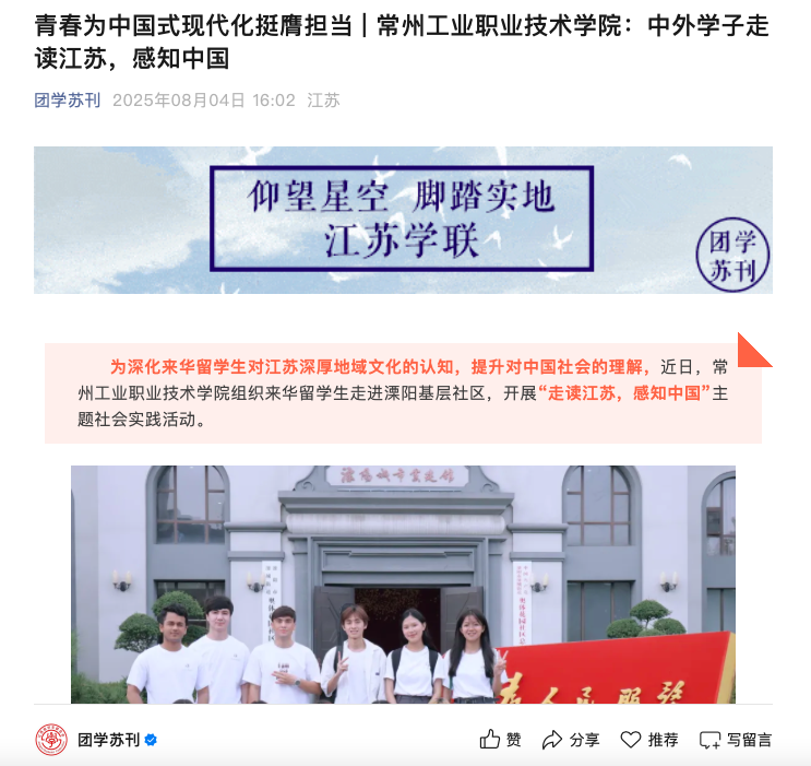 团学苏刊:青春为中国式现代化挺膺担当 | 常州工业职业技术学院:中外学子走读江苏,感知中国