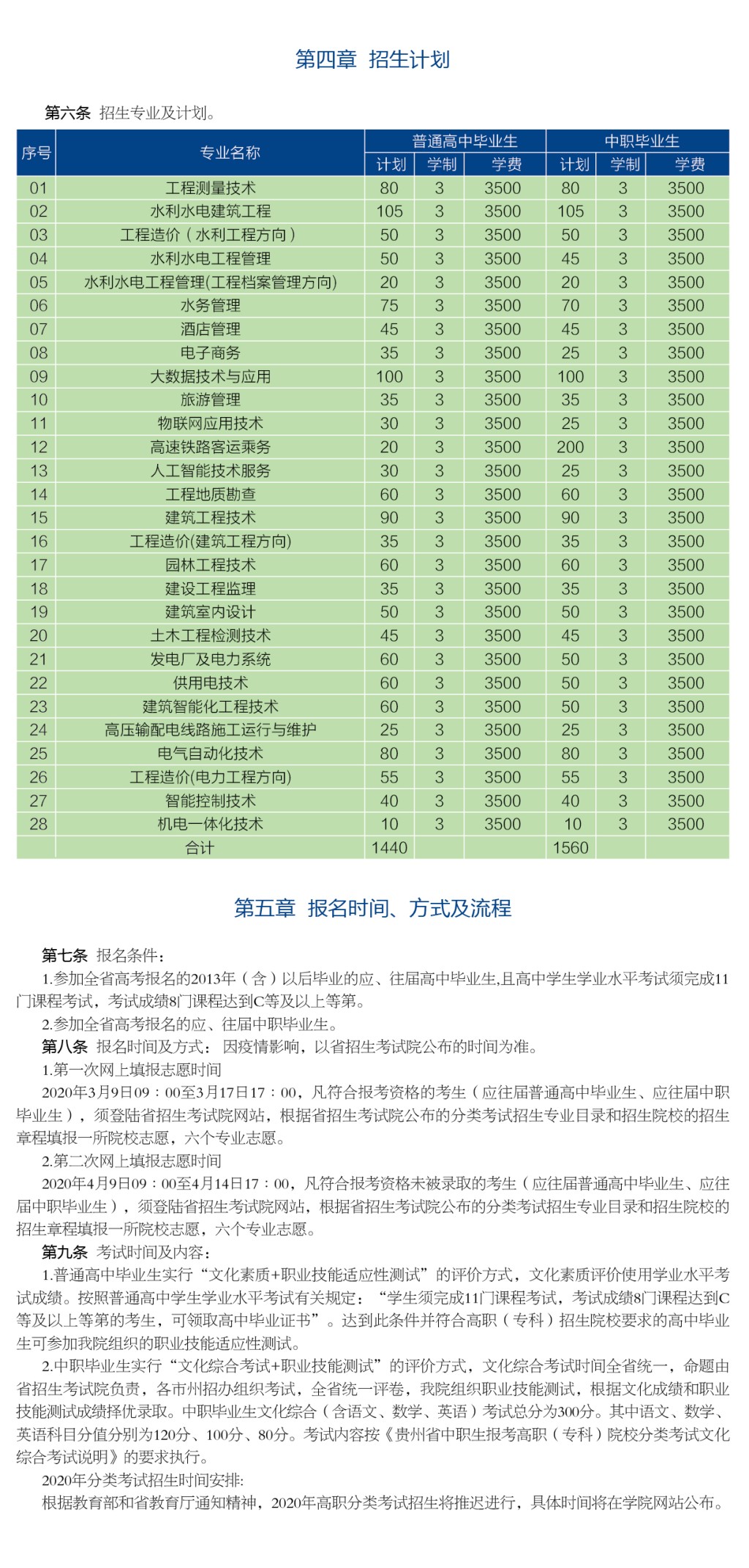 2020年贵州水院分类考试招生章程(招生专业及计划)