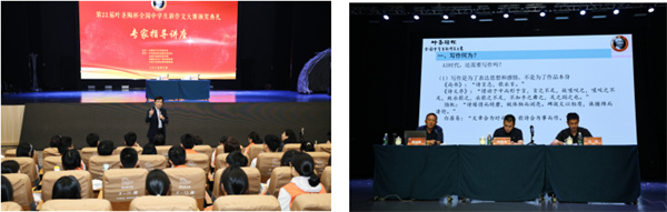 颁奖活动期间,曹文轩先生为获奖师生奉献了一场精彩的讲座。他从“跳空”“摇摆”“陡转”三个写作手法着手,结合自己的阅读与写作经验,通过大量文学名著案例解析,为同学们深入浅出地讲解了小说写作该如何去设计情节、刻画人物、怎样写出精彩的对话与独白,为青少年文学写作指出了一条新的训练路径。大赛专家评委山东大学文学院马兵、南京师范大学教授孙道功、中国传媒大学副教授蒋成峰结合评选稿件情况,以获奖佳作为例进行了写作指导。