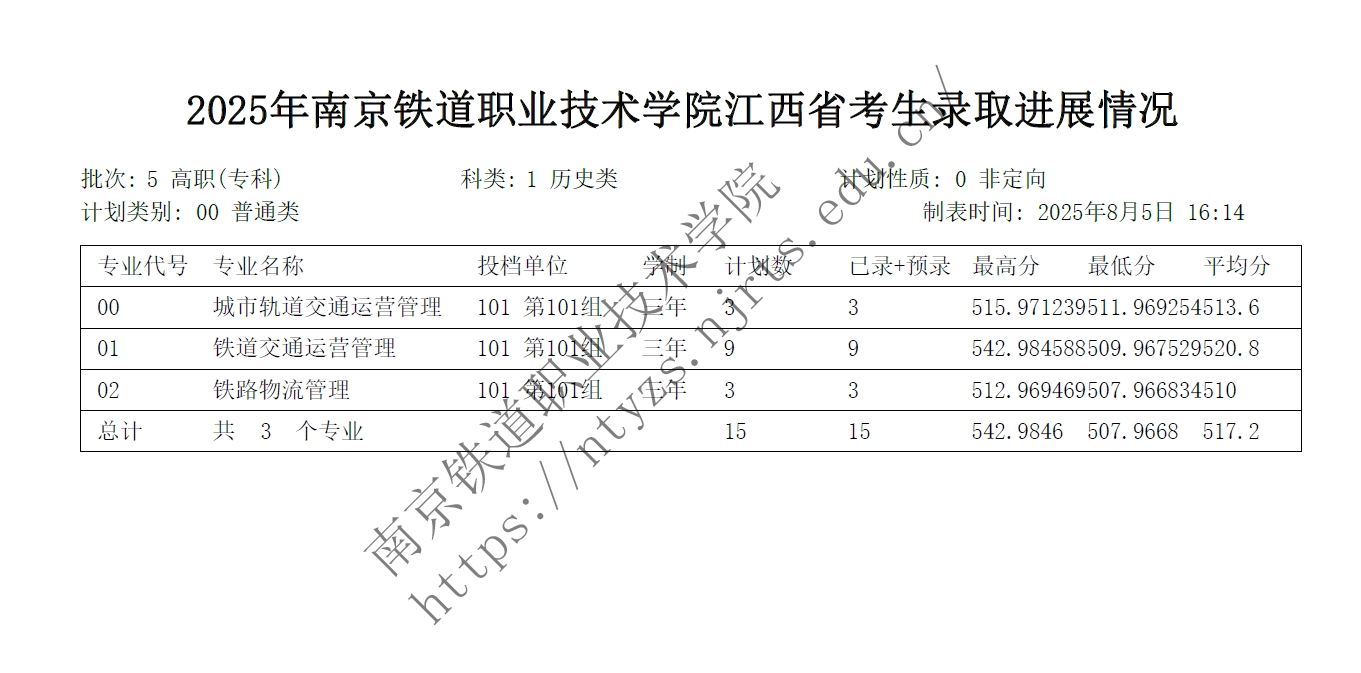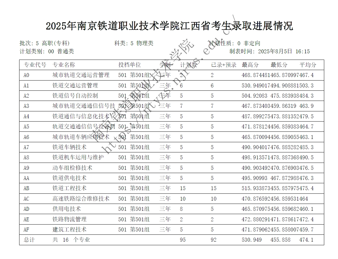 表格内容所示为普通类平行志愿投档各专业录取情况。因身体条件、不服从调剂退档导致未录满专业于江西省征集志愿阶段完成,征集志愿投档线见江西省教育考试院网站。