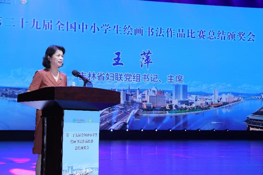 王萍在致辞中讲到,吉林作为东北老工业基地,地处东北亚区域的几何中心,这里有“金色”粮仓、“银色”冰雪、“红色”血脉、创新“蓝海”、“绿色”资源,“五色吉林”厚植振兴底色,也为吉林省少年儿童美育文化建设奠定了坚实基础。她勉励全省青少年要坚持梦想、奋发向上,从本土文化中汲取灵感,成为中华文化的传承者与创新者。