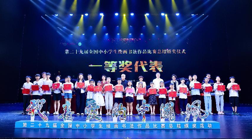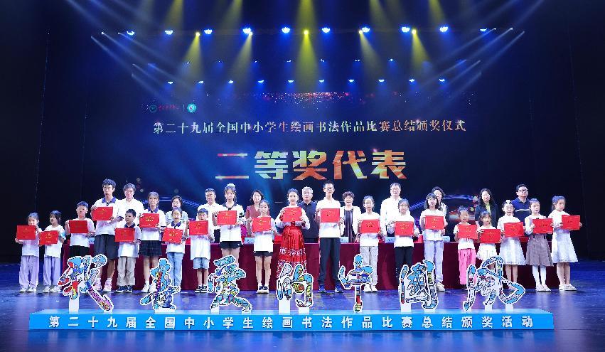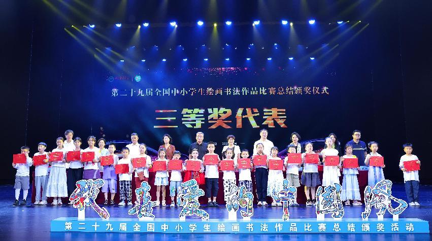 全国中小学生绘画书法作品比赛已成功举办29届,成为一项具有广泛影响力的国家级的公益性美育赛事。全国中小学生绘画书法作品比赛组委会秘书长黎建发布了第二十九届比赛评审结果:本届比赛参赛学生来自全国34个省(自治区、直辖市、特别行政区),有效参赛作品1750590幅(件),作品类型包括绘画、书法、摄影、造型和数字美术。活动为获得第二十九届比赛一、二、三等奖的学生代表,优秀指导教师代表,优秀组织单位、赛区共建优秀单位等代表颁发了奖项。