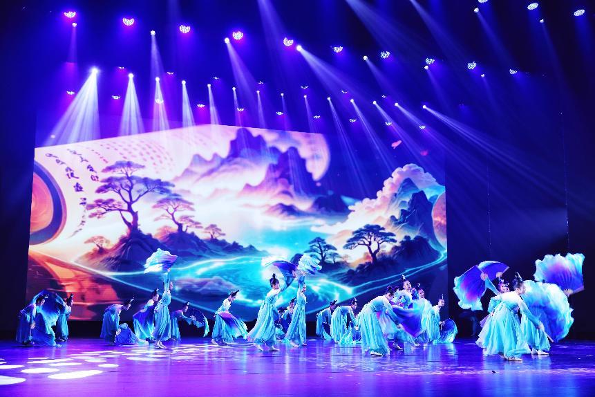延吉市青少年活动中心的20名学生带来的民族舞《山河入画来》,以舞为笔、以身为墨,融合古典舞的柔美韵律与灵动张力,通过肢体延展、群舞阵列变化,模拟山川的巍峨、江河的奔涌、草木的生长,呈现自然之力的磅礴与细腻,舞者与山水融为一体,观众亦踏入一幅流动的画卷,于呼吸间感受天地之美,体味中国山水画中写意精神化为艺术表达的精妙之处。