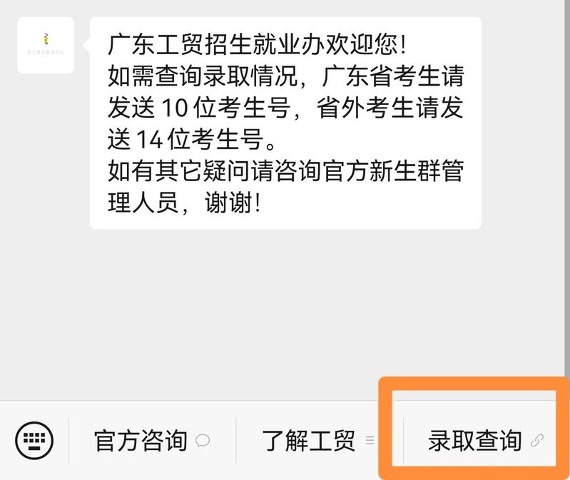 方式二:通过“广东工贸招生就业办”微信公众号查询