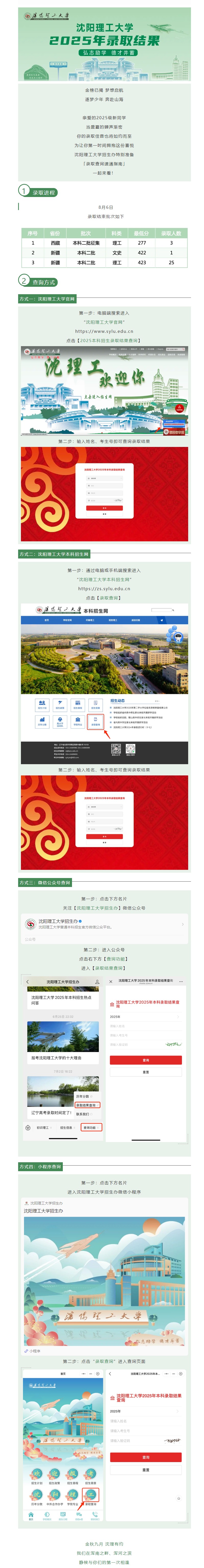 考生请查收!沈阳理工大学2025年录取信息更新中(8月6日)