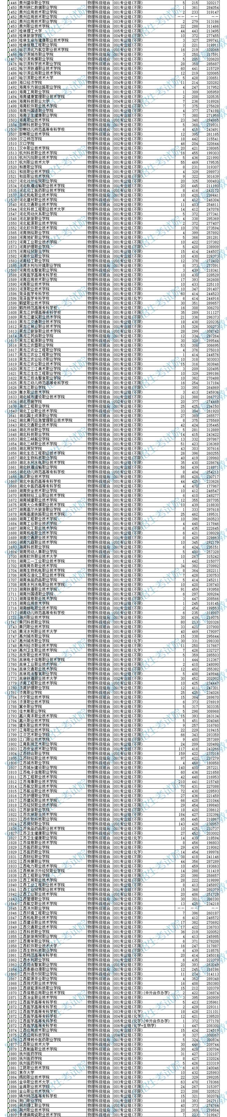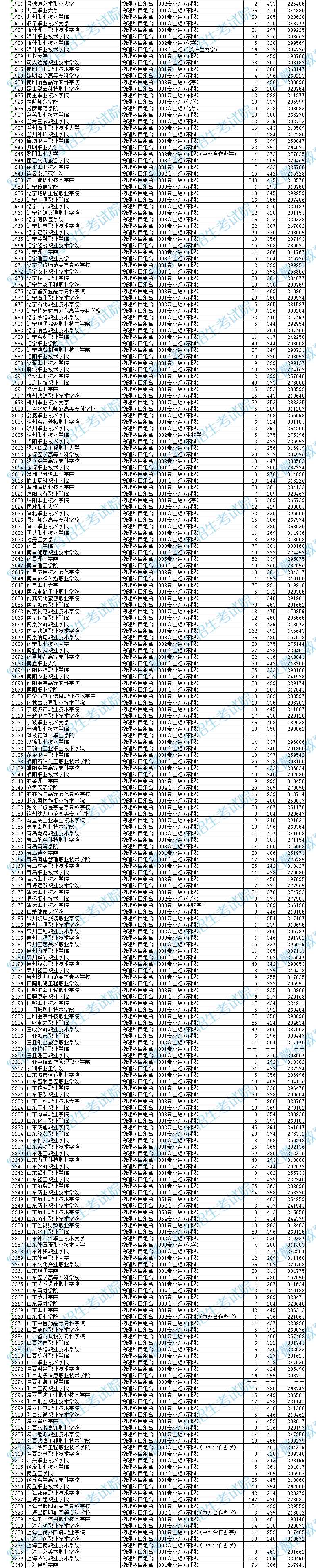 安徽省2025年普通高校招生普通高职(专科)批院校投档最低分及名次(物理科目组合)