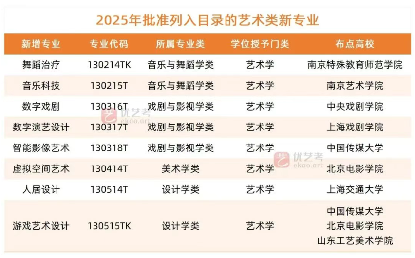今年4月教育部发布2025年普通高校本科专业目录,其中,新增艺术类专业如人居设计、智能影像艺术、数字戏剧等8个专业纳入2025年高考招生。今年新专业招生情况怎么样,有捡漏的可能吗?和优艺考一起看看。