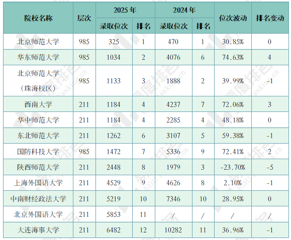 注:排名仅为211和985院校中的排名