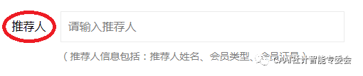7. “推荐人”一栏,请填写推荐自己入会的委员或专家的信息。如果无人推荐,可填写:“李勇,普通会员,E666400927M”,便于确认是本专委推荐的会员。