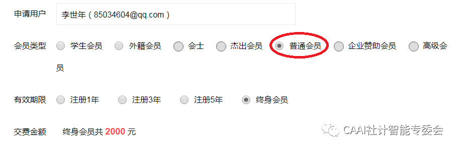 5. 会员类别可根据实际情况选择“普通会员”,完成交费。
