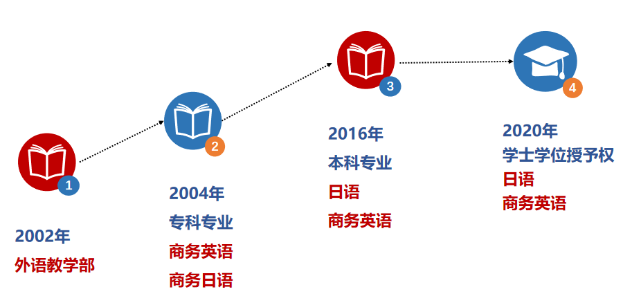 外国语学院开设有商务英语和日语两个专业,秉承“国际化”、“应用型”的办学特色,努力培养实践能力强、综合素质高、具有国际视野的应用型外语人才。
