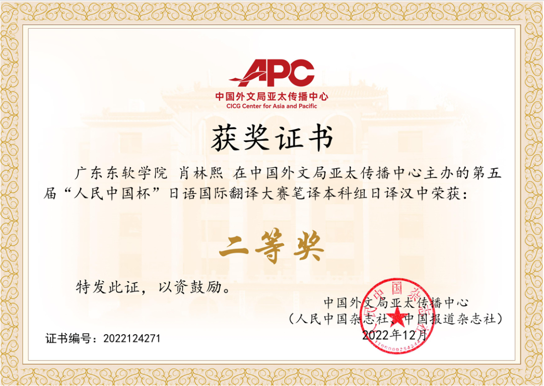 “人民中国杯”日语国际翻译大赛由中国外文局亚太传播中心及教育部日语专业虚拟教研室主办,以“以赛促学、教、创”为初衷,促进中日翻译事业与文化交流。自2018年起已办八届,2024年第七届吸引中日700余所高校及企业超万人参赛,国际影响力显著。