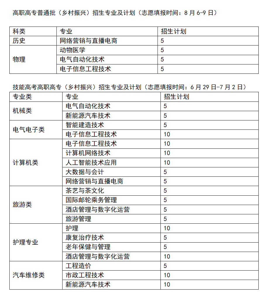 高职高专乡村振兴专项计划在高校同批次录取,执行高校所在批次线。