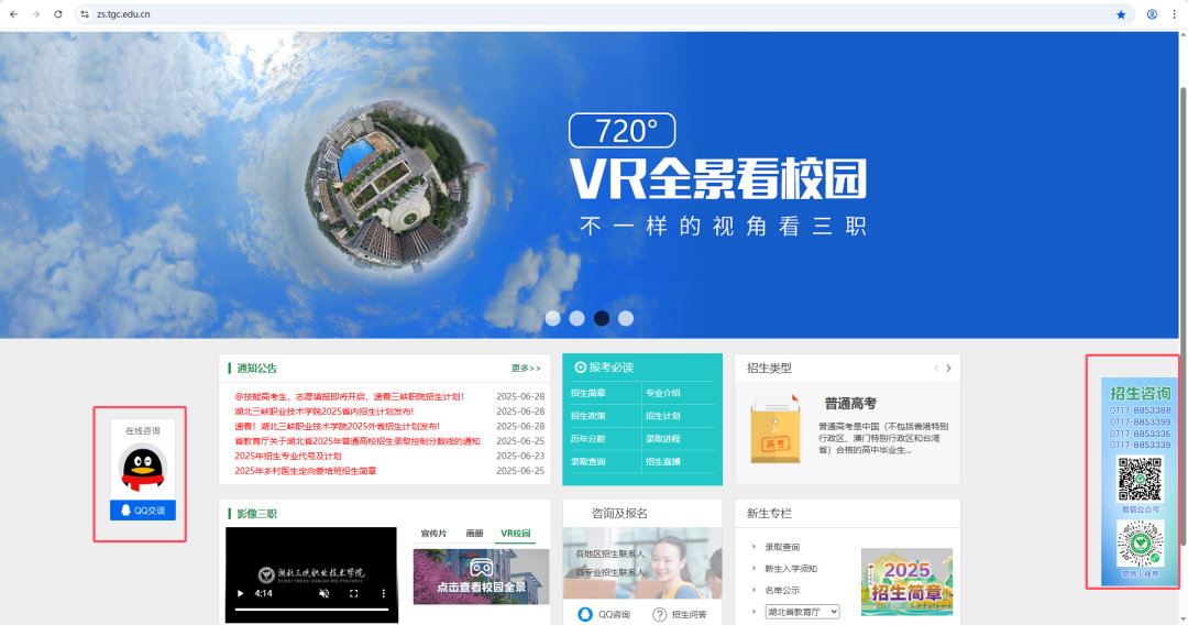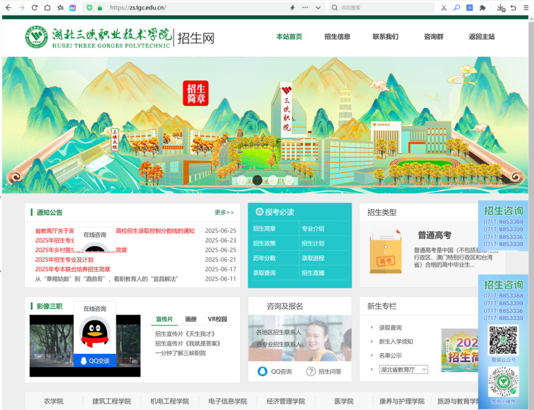 三峡职院智能招生服务平台已全面升级