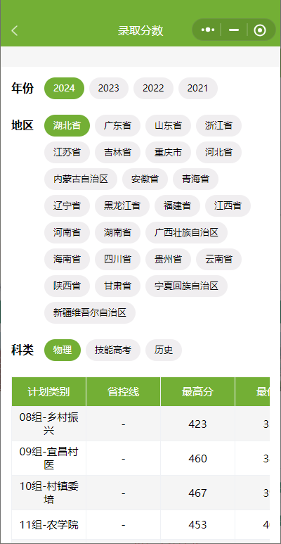 查计划、查分数: 省份、年份、科类 三个条件不能少!
