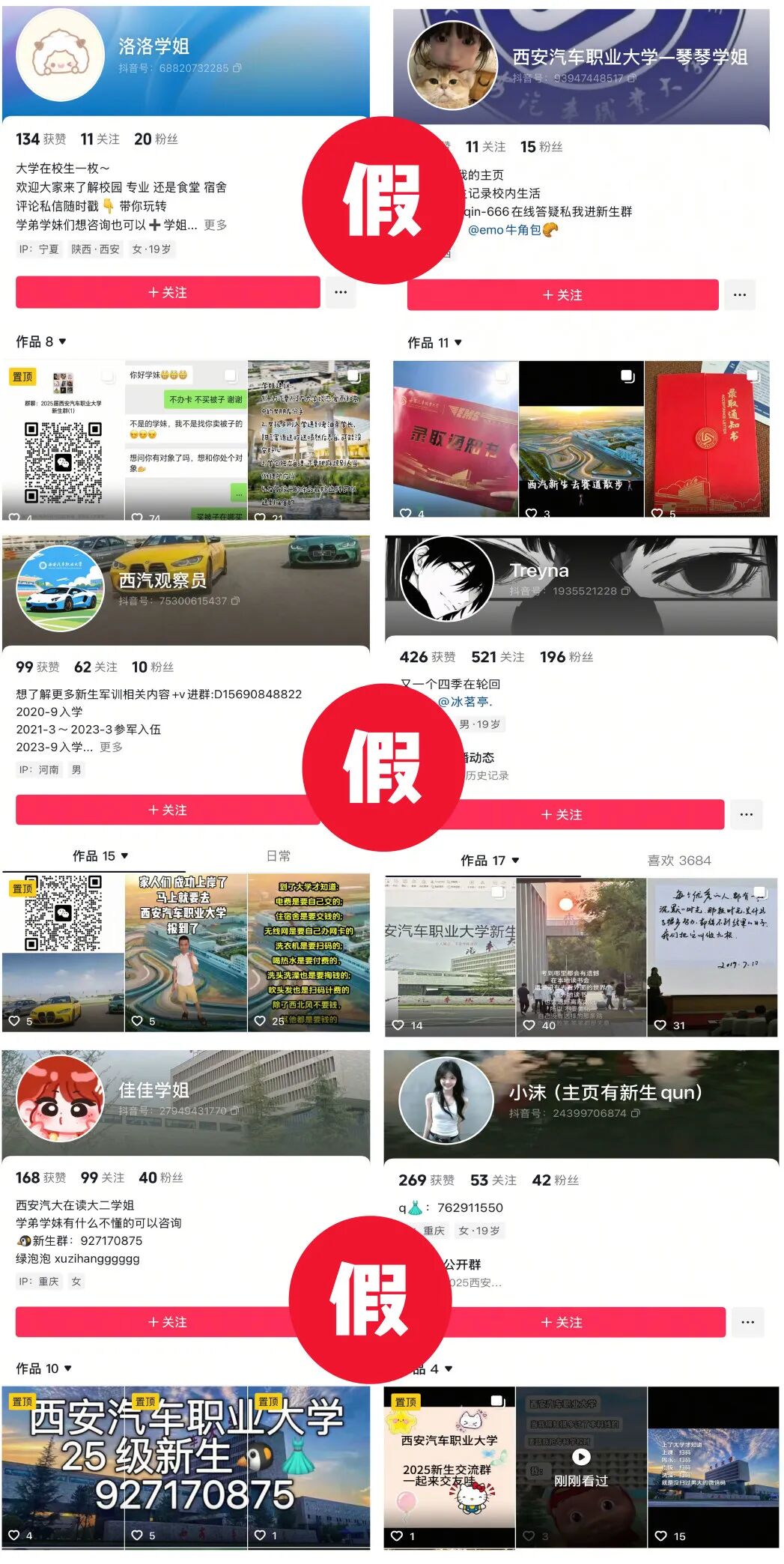 图|部分虚假账号截图