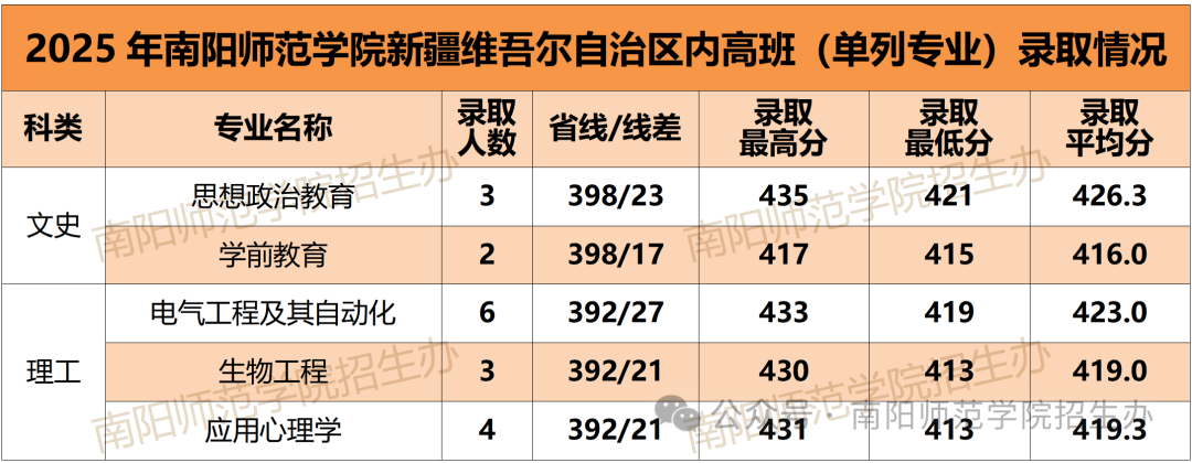 2025年南阳师范学院新疆维吾尔自治区内高班计划招生21人,南疆本科二批计划招生2人。