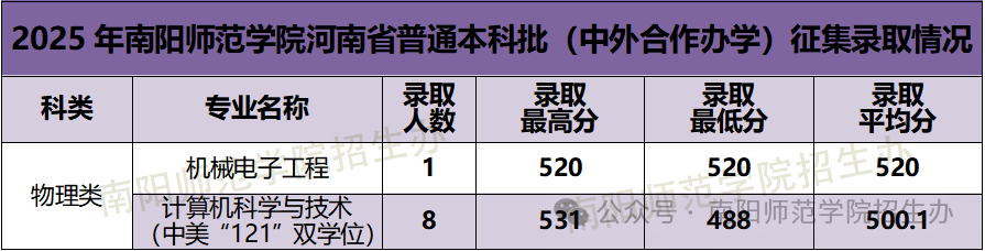 2025年南阳师范学院河南省普通本科批(中外合作办学)计划征集9人。
