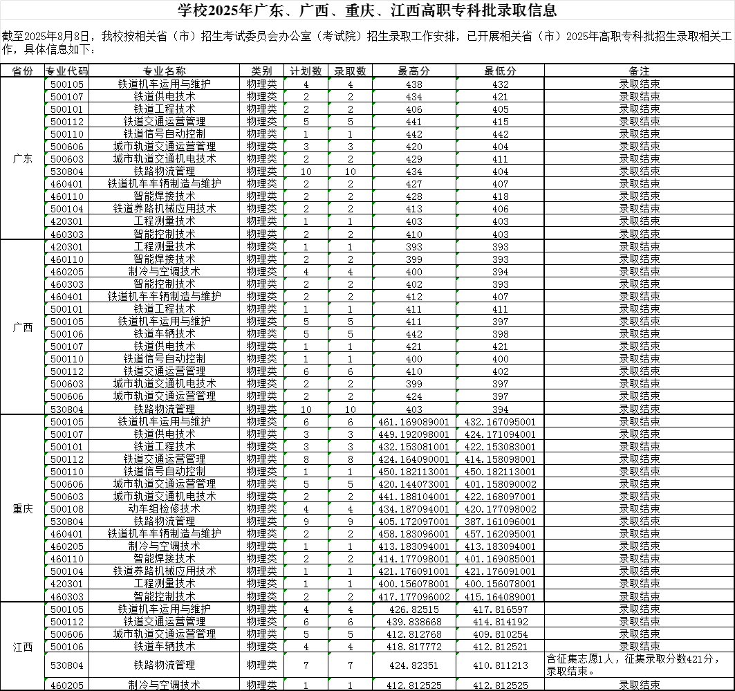 2025年录取进度(四)广东、广西、重庆、江西高职专科批录取信息