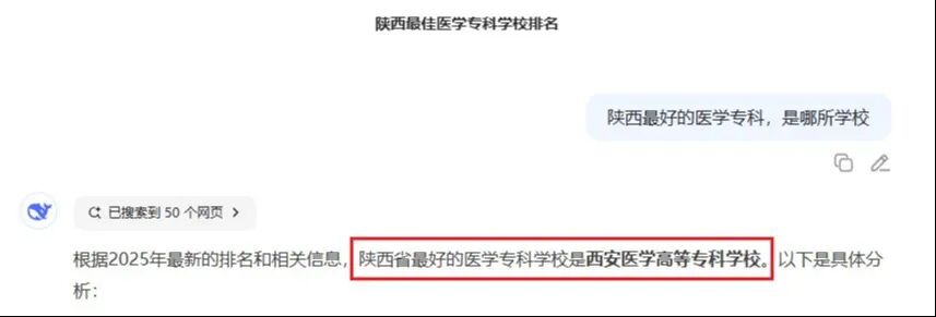 当迷茫的考生问起“陕西最好的医学专科”,DeepSeek智能推荐榜首的名字始终如一:西安医学高等专科学校。这份信任,源于十余万毕业生的共同选择。