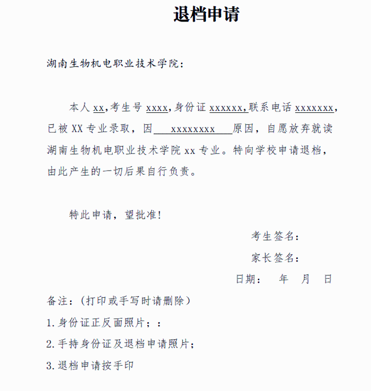7.退档申请模板;