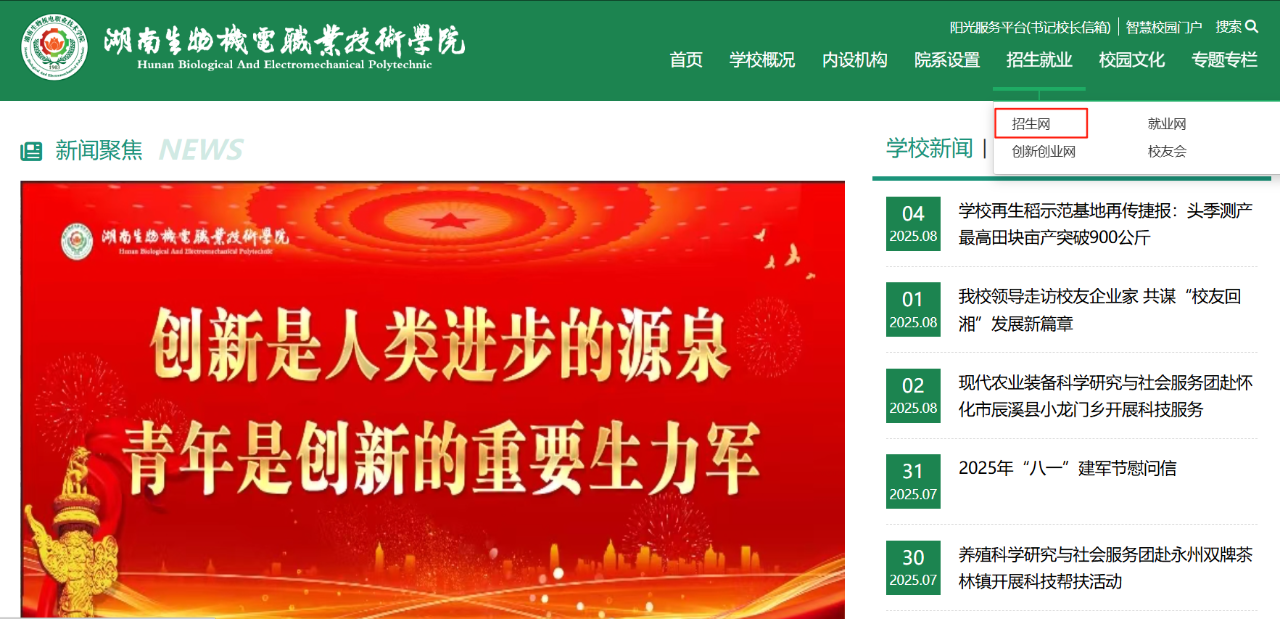1.考生在规定时间内,打开学校官网https://www.hnbemc.edu.cn/,点击"招生网";