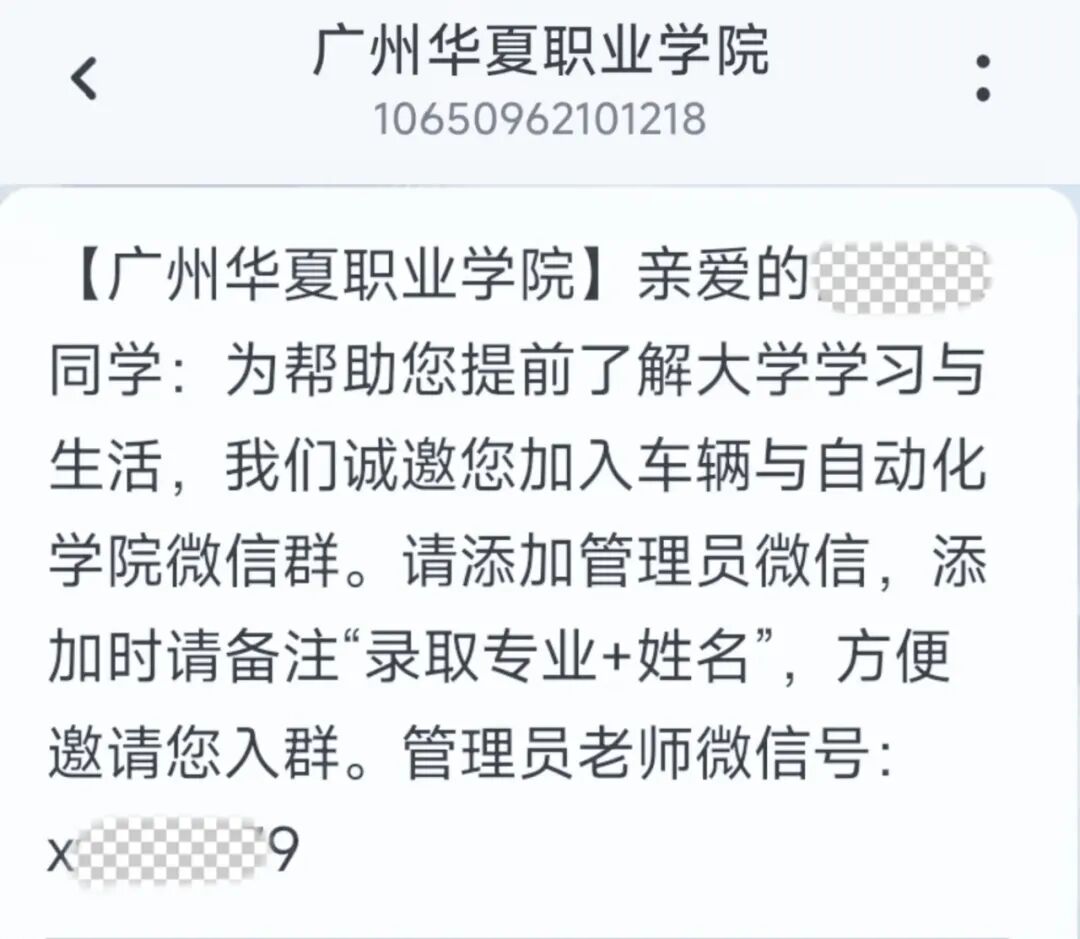 注意!春季高考被录取的考生已经在春季高考后建群,请勿重复加入!招生办已通过号码为“10650962101218”的官方短信平台统一发送短信通知邀请新生进群,请留意手机短信。