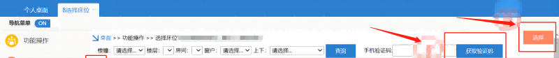 5.在页面中勾选自己意向房间及床位,后点击“获取验证码”按钮,输入收到的验证码后点击“选择”按钮,即可完成自选。注意选择成功后不可更换!!!