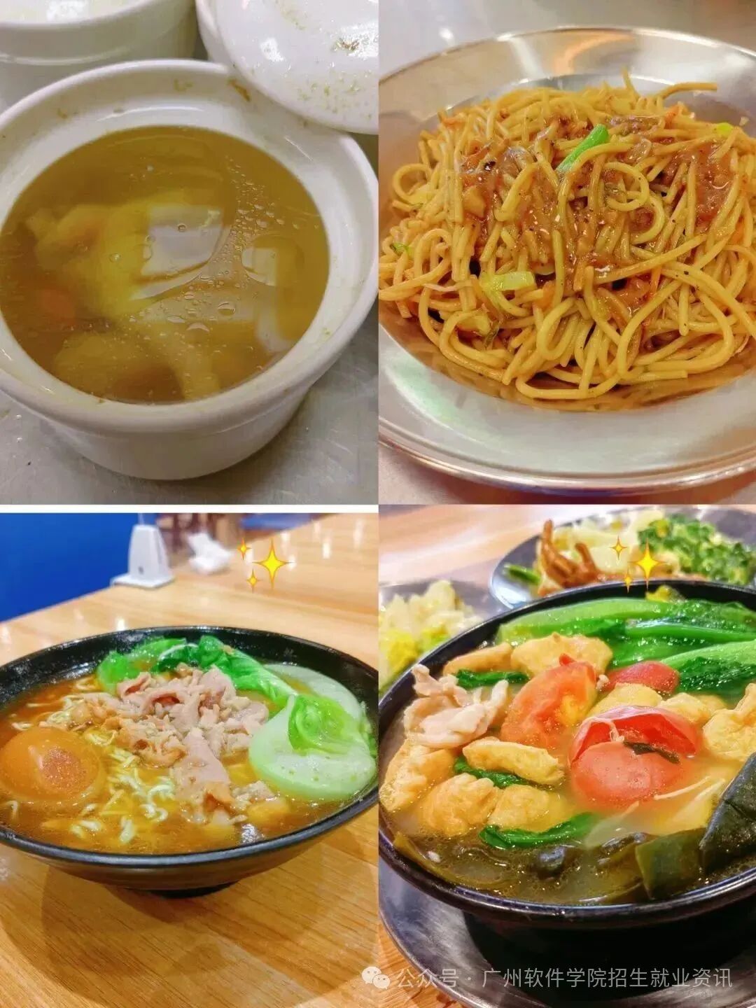 位于广软江门校区,这里的美食有强记港式烧味、蒙自源过桥米线等多样档口,涵盖烧味、米线、汉堡、麻辣烫 ,还有潮汕汤粉、现炒湘菜、咖喱蛋包饭、羊杂面,更有金早绿点、一楼茶饮、二楼水果切,满足味蕾多样需求,为师生带来美味就餐体验 。