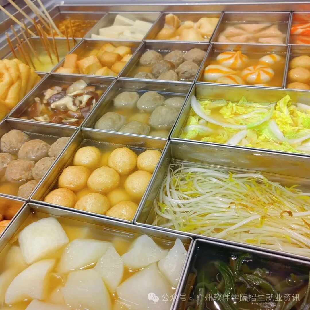 鲜香交融云吞牛腩、麻辣鲜香的麻辣香锅、淡而不寡的米线……南北风味俱全,东西美食交汇,能极大地满足爱好美食的广软人。对了,还有酥脆美味的炸鸡小吃哟~