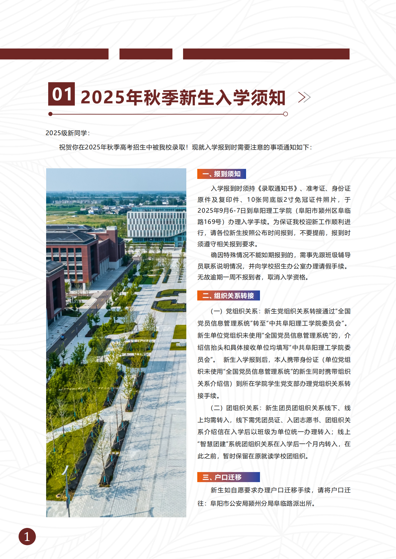 阜阳理工学院2025年新生入学须知