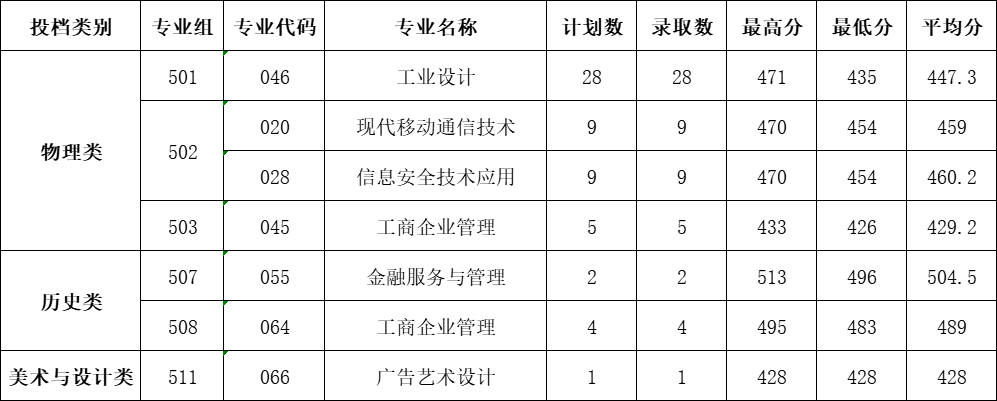 广东机电职业技术学院2025年广东省夏季(征集)高考各专业投档信息一览表