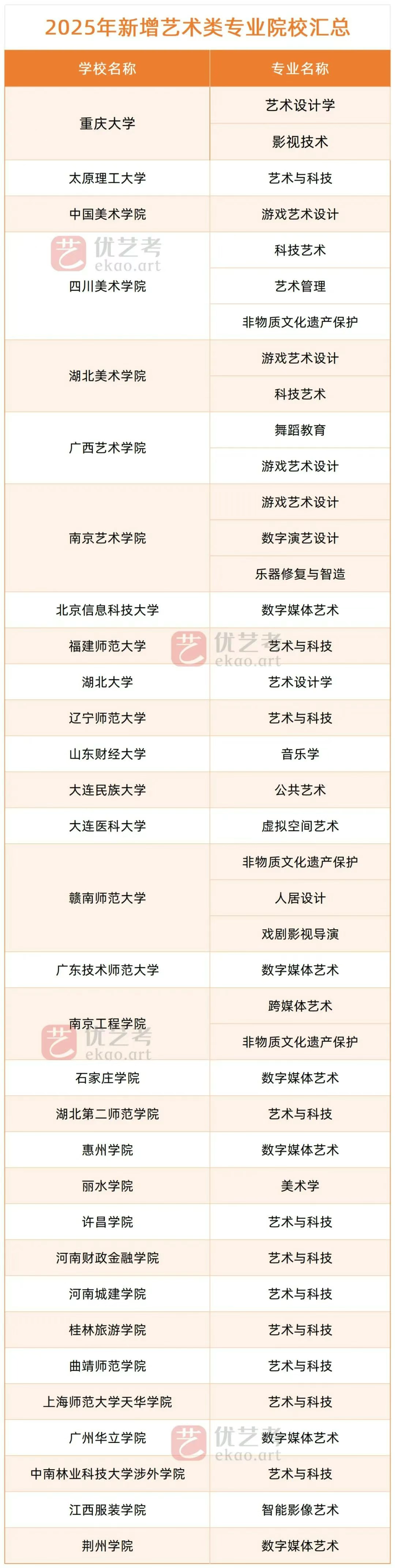 目前,已有接近140所本科高校发布了2025年度拟新增、撤销部分本科专业的公告,拟新增600余个本科专业点。其中,拟新增艺术类本科专业的高校有31所,拟新增41个艺术类本科专业点,一起来看看今年新增的专业都有什么特点。