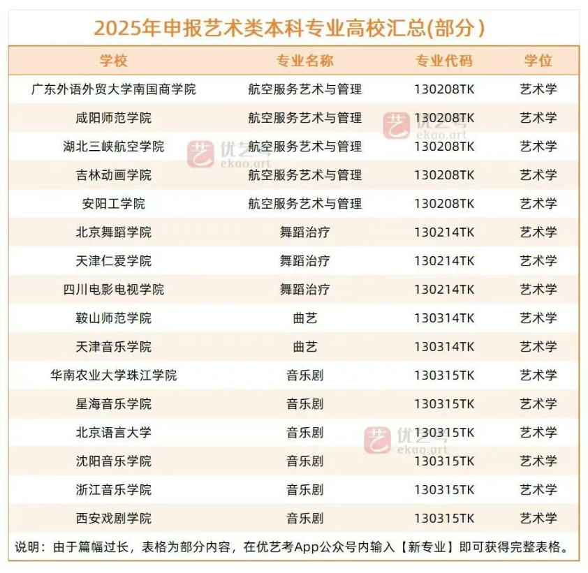 由于篇幅过长,剩余高校及申报专业可在优艺考App输入【新专业】获取全部表格内容。