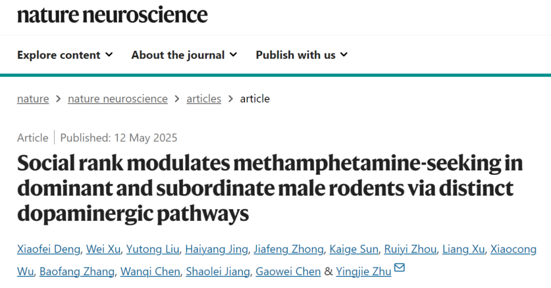 有意思的是,如果采用行为学手段逆转社会等级,中脑皮层边缘多巴胺系统的功能及末梢纤维密度会相应改变,小鼠的觅药行为也会得到相应逆转。深圳先进院研究员朱英杰为本文通讯作者,深圳先进院助理研究员邓潇斐、深圳理工大学特聘副教授徐薇、深圳先进院助理研究员柳昱彤为本文共同第一作者。(论文链接:https://doi.org/10.1038/s41593-025-01951-0)