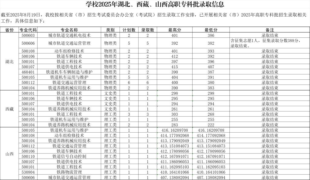 2025年录取进度(七)湖北、西藏、山西高职专科批录取情况
