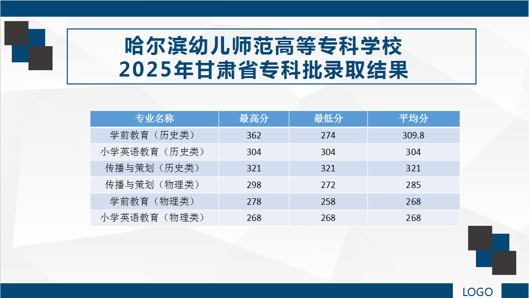 哈尔滨幼儿师范高等专科学校2025年甘肃省专科批录取结果