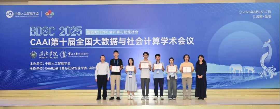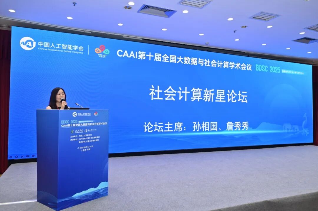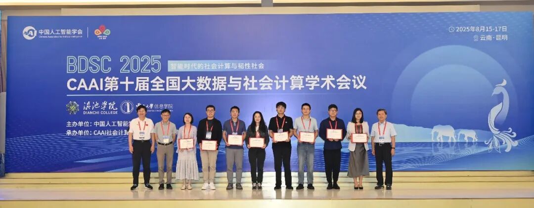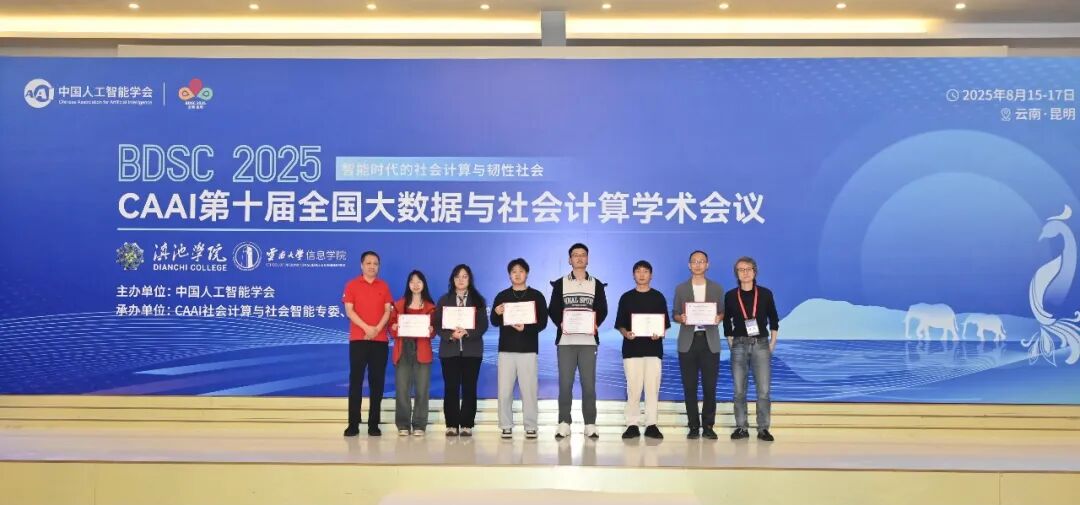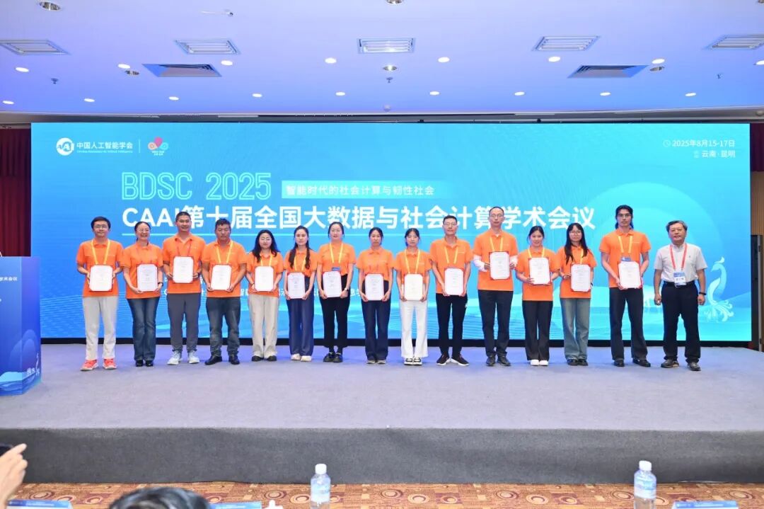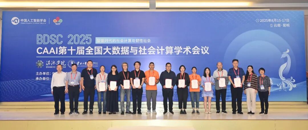 CAAI第十届全国大数据与社会计算学术会议(China National Conference on Big Data & Social Computing,简称BDSC2025)于2025年8月15-17日在昆明召开。会议由中国人工智能学会主办,社会计算与社会智能专委、滇池学院、云南大学信息学院共同承办。本届会议以“智能时代的社会计算与韧性社会”为主题,汇聚人工智能、社会科学、信息科学等多领域顶尖学者,聚焦智能社会背景下社会计算与韧性社会领域面临的新机遇与新挑战。