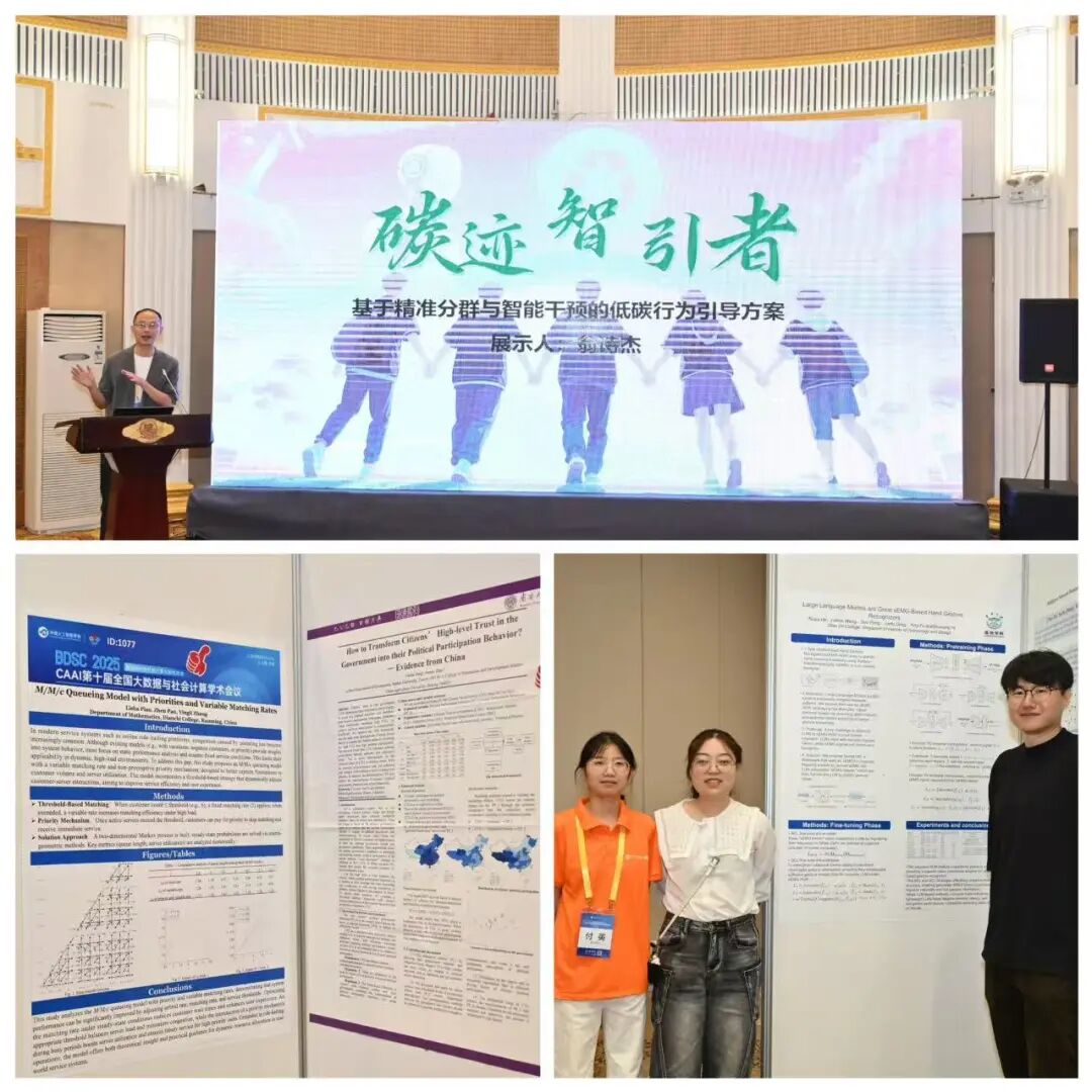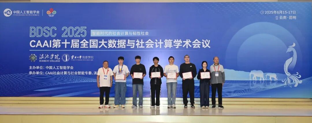 在本次大会中,滇池学院师生积极参与到学术交流分享当中,与业内专家学者进行了热烈的交流讨论,展现了滇池学院的优良学术生态和开放科研氛围。滇池学院“碳迹智引者”项目在CAAI-BDSC 2025社会计算创新大赛中获三等奖。滇池学院论文“Large Language Models are Great sEMG-Based Hand Gesture Recognizers”“M/M/c Queueing Model with Priorities and Variable Matching Rates”被大会收录。