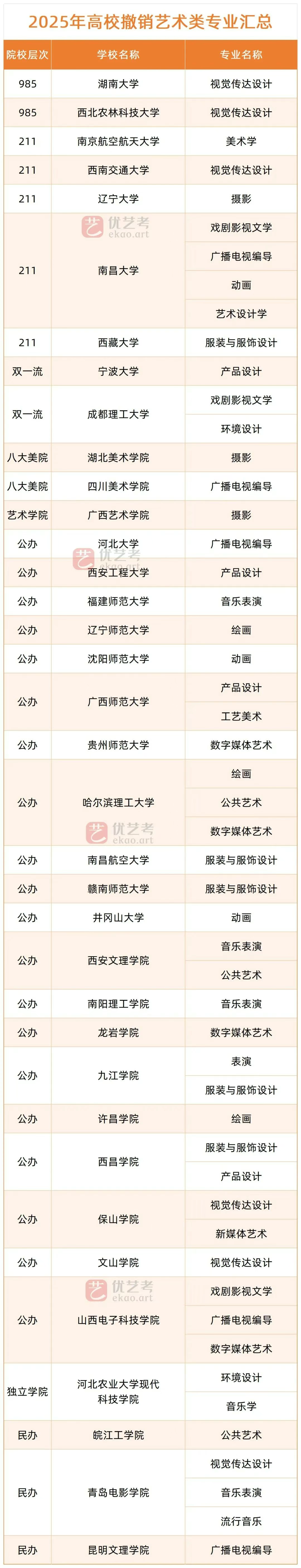 优艺考整理了2025年高校撤销的艺术类专业,发现今年