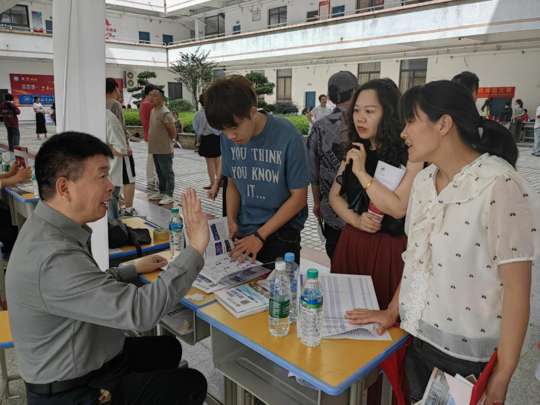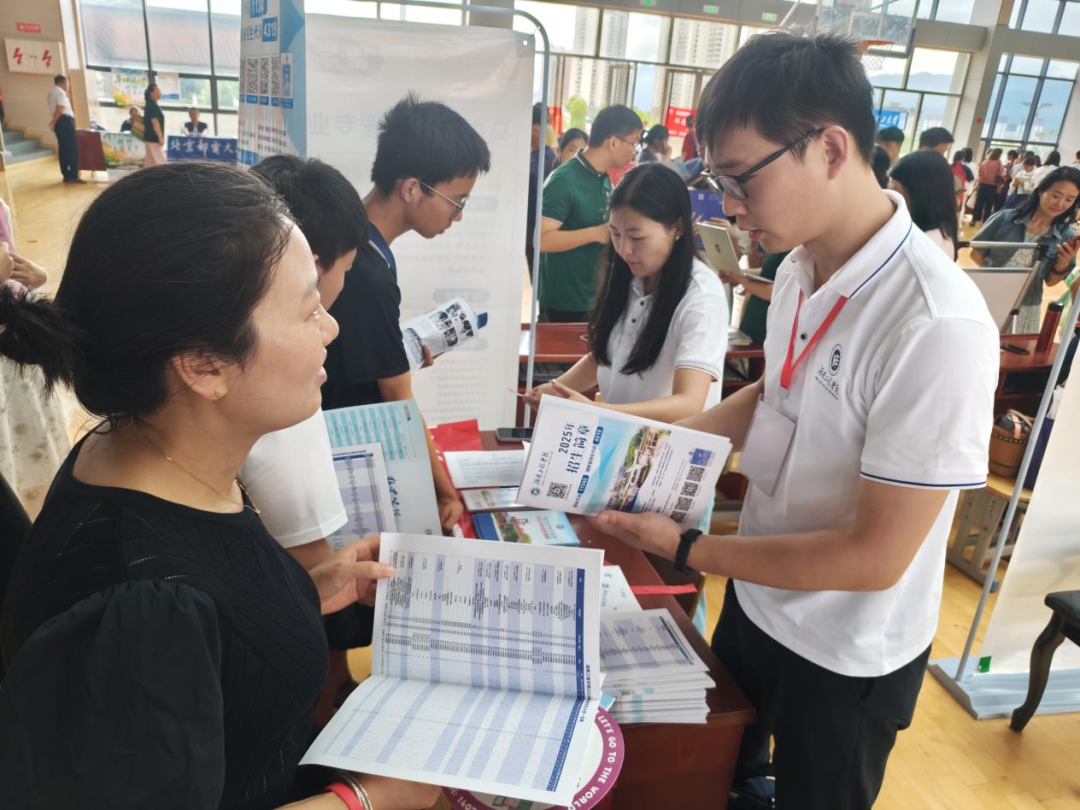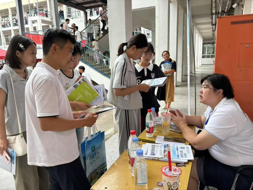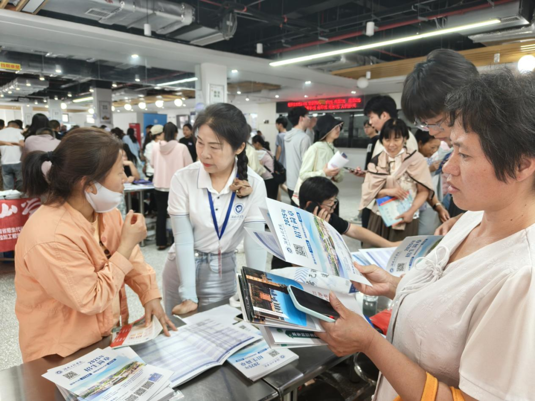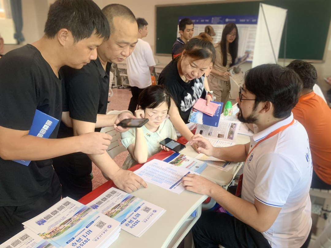 各二级学院积极投身招生工作前沿,深度参与高招咨询会等活动,60多名教师走进省内外120余所高中校园、参加各类教育博览会,通过现场咨询、资料发放、展板展示等形式,面对面为考生及家长提供志愿报考指导,全方位展示办学特色与育人成果。