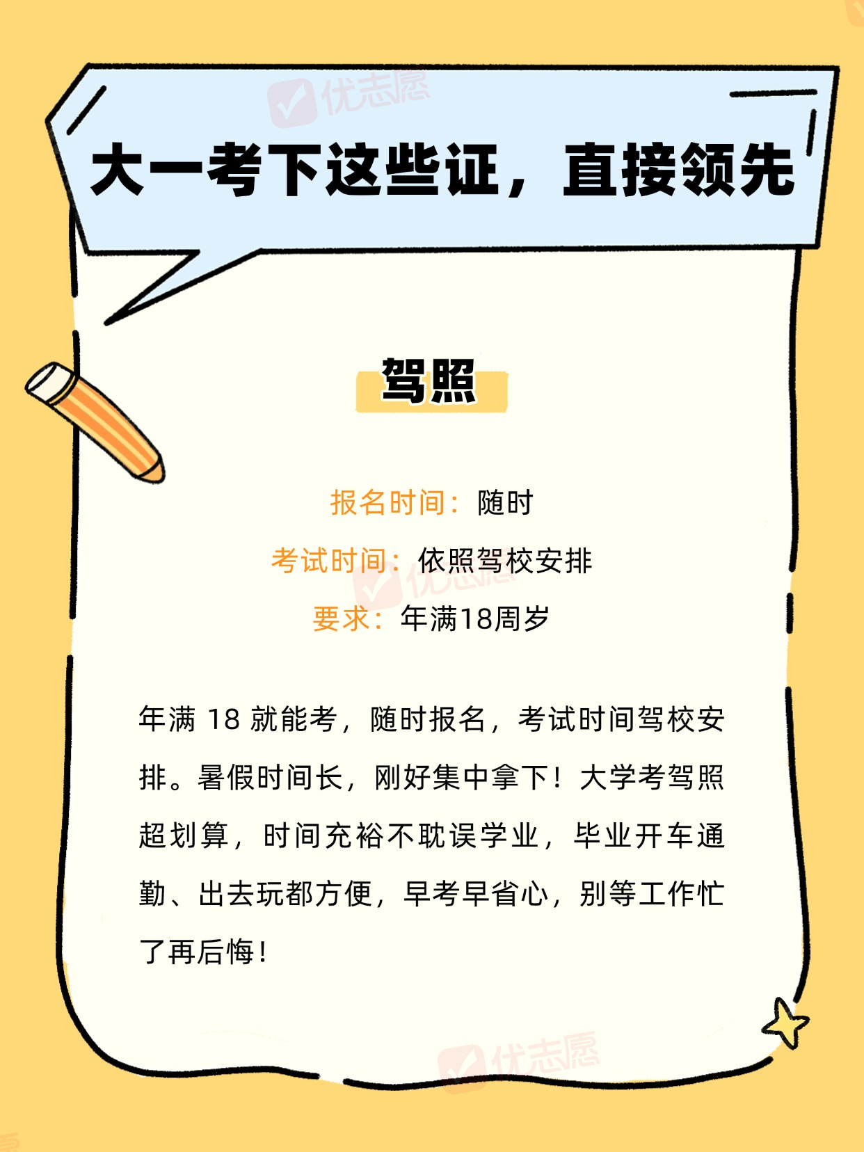 目前志愿填报已经落下帷幕,目前准大一新生们除了等录取通知书外,还有不少人在暑期准备考驾驶证。其实除了驾驶证,我们还能提前准备考这几个证书,对以后就业有用。