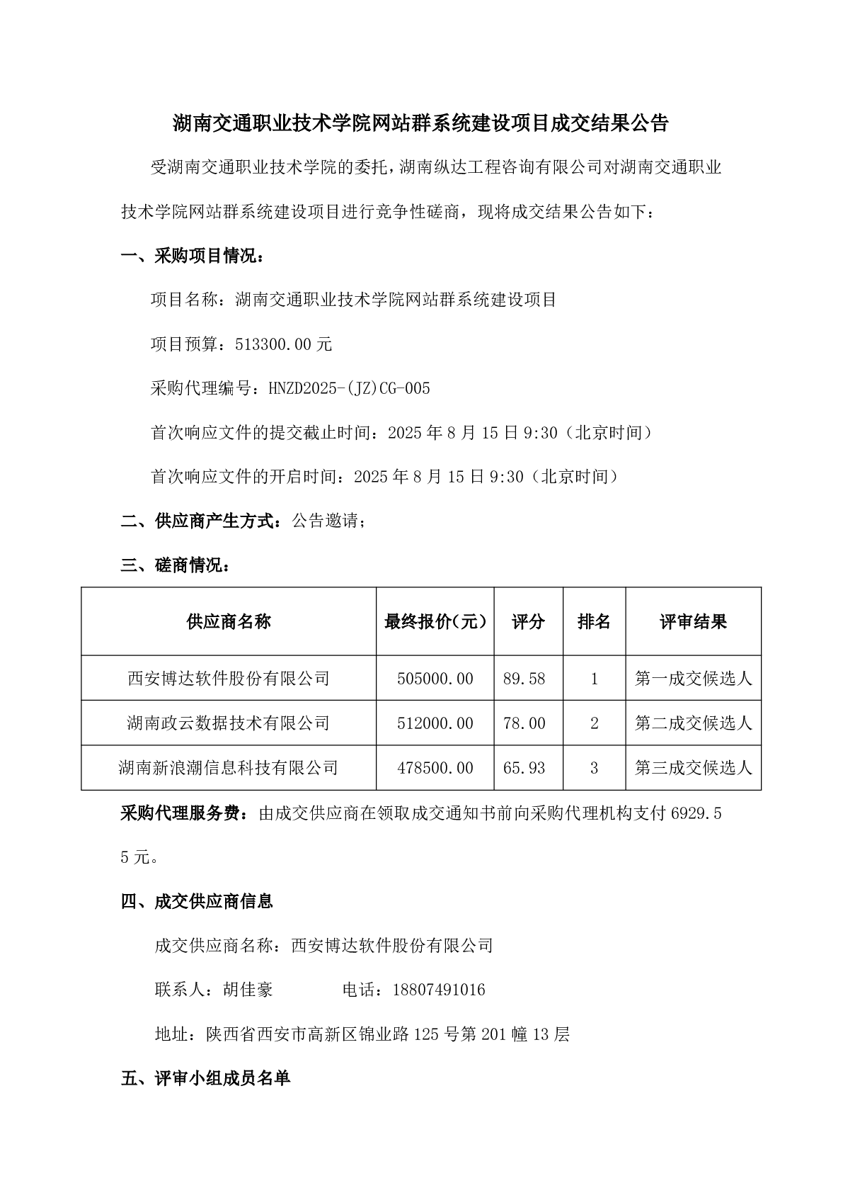 湖南交通职业技术学院网站群系统建设项目成交结果公告