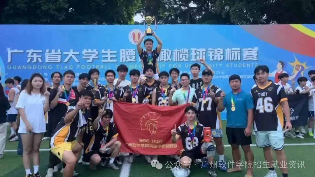 •广东省大学生腰旗橄榄球锦标赛: 我校特洛伊橄榄球队摘得甲组冠军。
