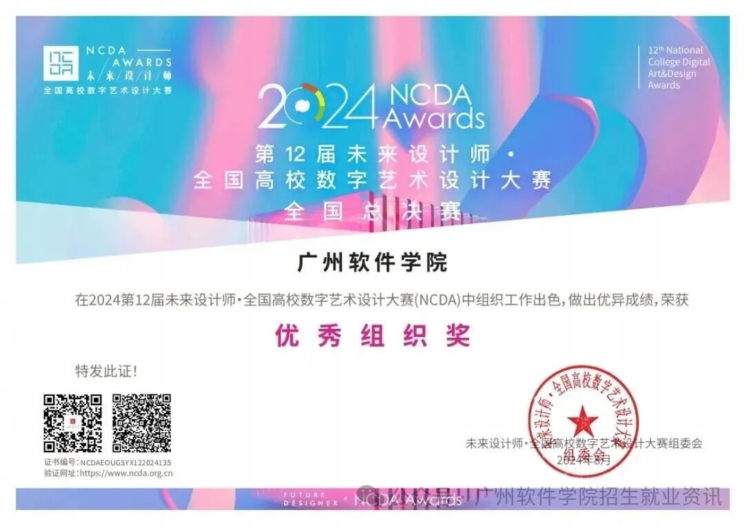 •全国高校数字艺术设计大赛 (NCDA):我校创业设计学院(原数码媒体系)学子荣获全国总决赛一等奖1项、二等奖2项、三等奖1项,省赛一等奖5项等众多奖项,学校获“优秀组织奖”!
